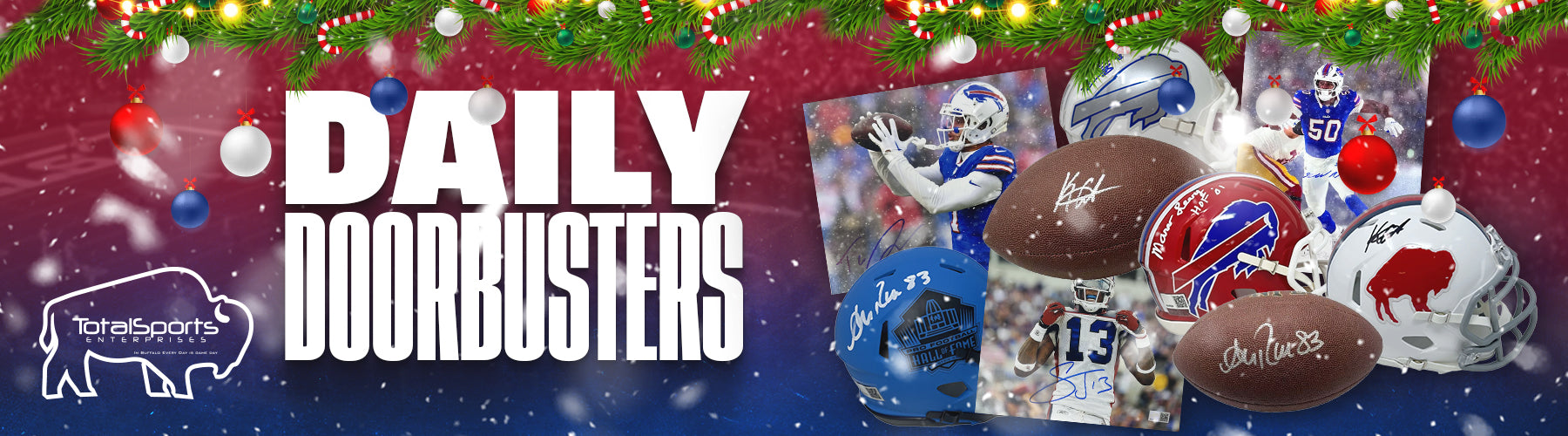 Total Sports Enterprises is your one source for signed football jerseys, autographed footballs, signed photos or autographed helmets. We are your one source for signed Buffalo memorabilia! 100% authentic, 100% guaranteed!