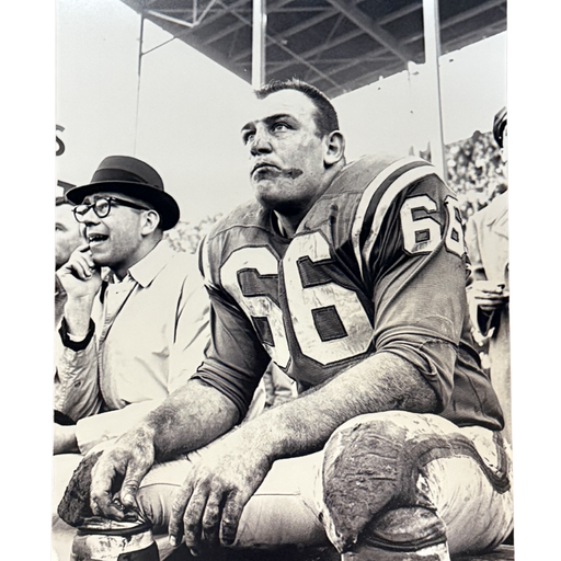 Billy Shaw Unsigned Sitting in Black and White 8x10 Photo. Total Sports Enterprises is an Official Partner of the Buffalo Bills