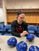 This officially licensed Buffalo Sabres blue mini helmet features the crisp team logo and has been personally hand-signed by Bowen Byram. Known for his skating ability, offensive upside, and strong presence on the blue line, Byram has quickly made an impact, making this autographed helmet a great addition for fans and collectors alike.