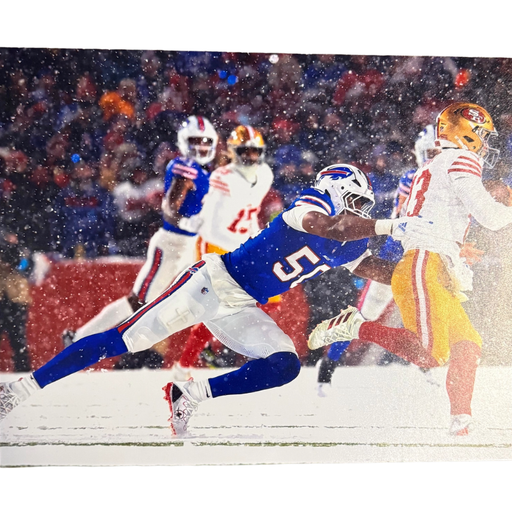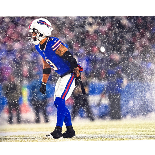 Taylor Rapp Unsigned Ready in Blue in Snow 8x10 Photo. Total Sports Enterprises is an Official Partner of the Buffalo Bills