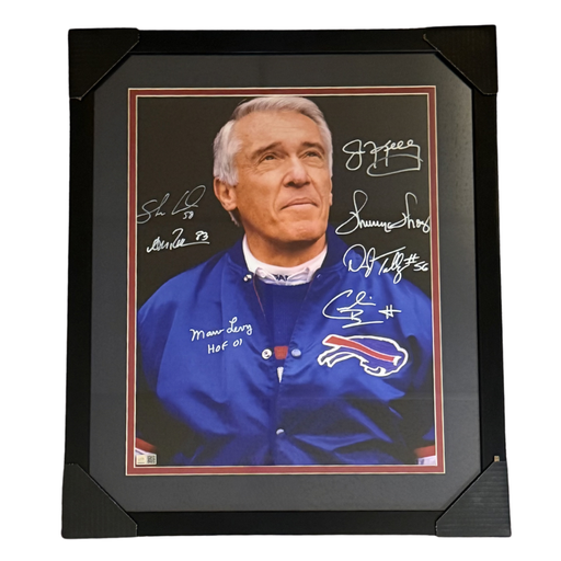 View full detailsBuffalo Bills Dynasty Legends Multi-Signed Marv Levy Spotlight Portrait 16x20 Photo – Professionally Framed Own a true centerpiece of Buffalo Bills...