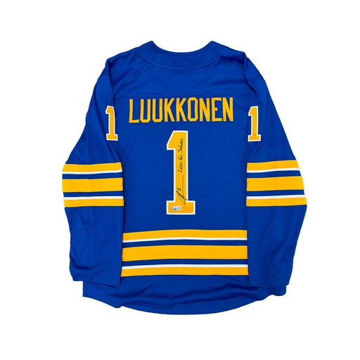 View full detailsUkko-Pekka Luukkonen Signed Buffalo Sabres Authentic Blue Jersey with "Let's Go Sabres" This item comes with TSE AUTHENTICATION (an $8 value) and a...
