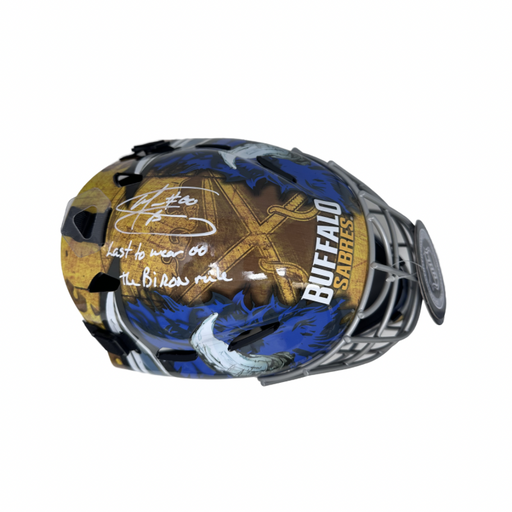 View full detailsMartin Biron Signed Buffalo Sabres Full Size Goalie Replica Mask with "Last to Wear '00 and The Biron Rule". This item comes with TSE AUTHENTICATIO...