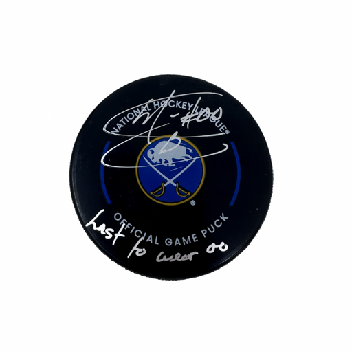 View full detailsMartin Biron Signed Buffalo Sabres Official Game Model Hockey Puck with Last to Wear '00. This item comes with TSE AUTHENTICATION (an $8 value) and...