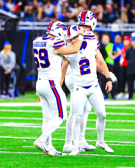 Reid Ferguson Unsigned Tapping Helmets Field Goal Celebration with Tyler Bass Photo. Add a great moment of teamwork to your collection with this ...