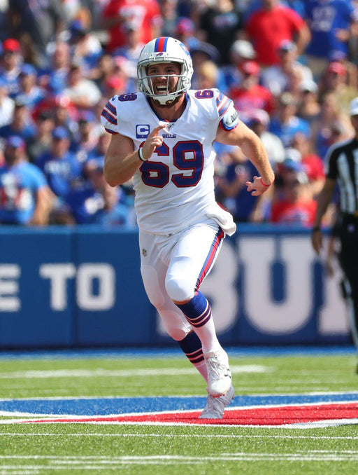 Reid Ferguson Unsigned Running Downfield Post Long Snap in White Jersey Photo. Add a dynamic action shot to your collection with this Reid Fergus...
