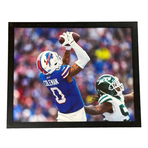 Keon Coleman Unsigned Catch vs Jets 16x20 Photo with Standard Frame  Details: Photo size: 16" x 20" Includes standard frame Ready to hang or ...
