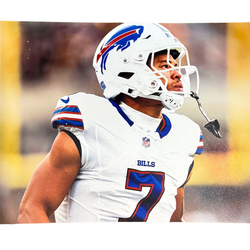 Taron Johnson Unsigned Close Up in White 8x10 Photo. Total Sports Enterprises is an Official Partner of the Buffalo Bills