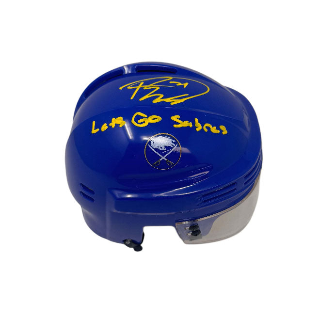 Ryan McLeod Signed Buffalo Sabres Blue Mini Helmet with Let's Go Sabres.
